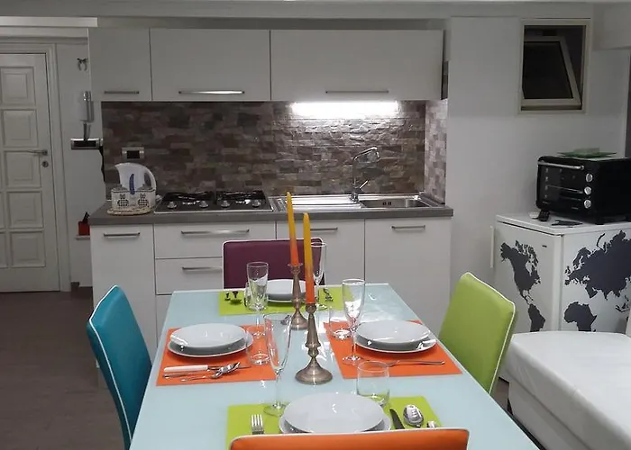 El salón, adornado con un sofá confortable, es el lugar perfecto para relajarte después de un día explorando la ciudad. Desde el apartamento, podrás disfrutar de un balcón que te invita a respirar el aire fresco y contemplar las vistas que rodean la zona. Además, el apartamento se encuentra a solo 20 minutos andando de la famosa playa de Taormina - Giardini Naxos, lo que te permitirá disfrutar de días soleados y entretenimiento junto al mar. La ubicación del Apartamento Taormina Rainbow House facilita el acceso a varios puntos de interés cercanos, perfectos para quienes desean explorar. Además, el aeropuerto de Catania Fontanarossa se encuentra a solo 60 km, lo que hace que tu llegada y salida sean prácticas y sencillas.